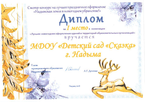 Арт-талант. Международный арт-проект «Зимние фантазии», номинация: оформление группы/кабинета, работа: презентация «Зима, зимушка, зима снега много намела», диплом победителя 1 место, 2016 г.